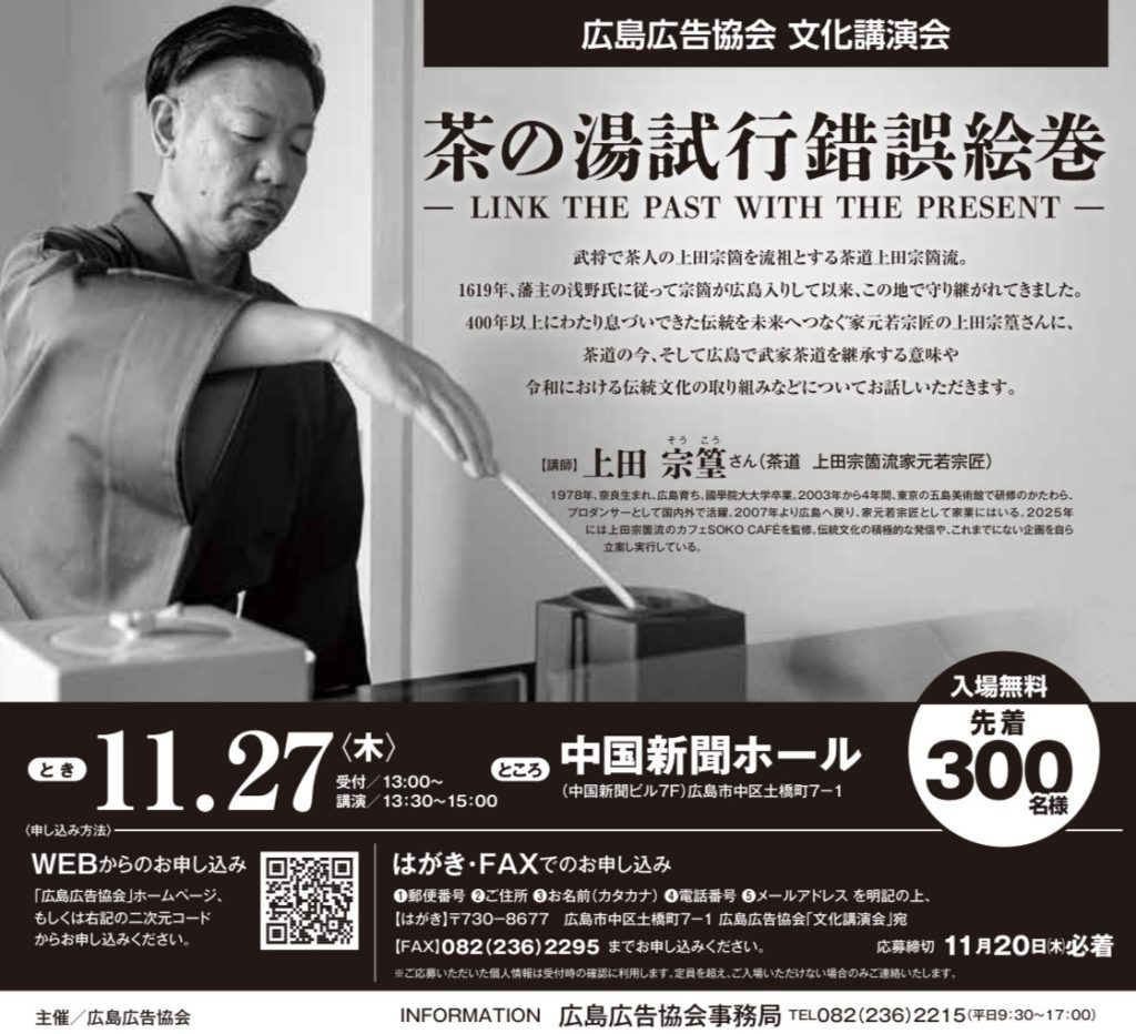 宗篁若宗匠が広島広告協会 2025年度の文化講演会の講師を務めることになりました。